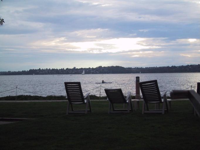 Mar. 31st, 2004 08:18 amAlthough traffic often bogs there, I love my commute across Lake Washington. The lake itself has infinitely many moods, an amazing range of textures and colors. The surface is elemental, ranging from quicksilver to hematite to slate, the dull sheen of graphite to the glare of burning magnesium. Sometimes Tahoma presides over the southeastern horizon, cloaked in snow and cloud. Just now we're coming into rowing season, and still mornings bring out braces of six- or eight-man crews, the sculls looking like giant insects on the glassy surface.